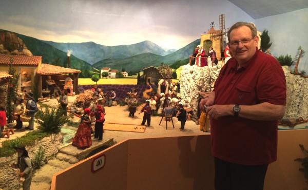 Im Oktober 2011 schenkten die Eheleute Waltraud und Heinz Freiberger (siehe Bild oben) ihre provencalische Krippe mit ca. 100 Figuren dem Krippenverein. Sie haben über Jahrzehnte, insbesondere im Rahmen ihrer Aufenthalte in Südfrankreich, die Figuren erworben und die Krippe viele Jahre bei sich zu Hause aufgestellt. Mit Unterstützung von Monsignore Walter Waldschütz hat diese Krippe im Pfarrzentrum nun einen festen Platz gefunden. Seit dem Frühjahr 2013 haben einige Vereinsmitglieder den Unterbau, die Landschaft und die Gebäude in zahlreichen Arbeitsstunden auf ca. 8 qm² aufgebaut.